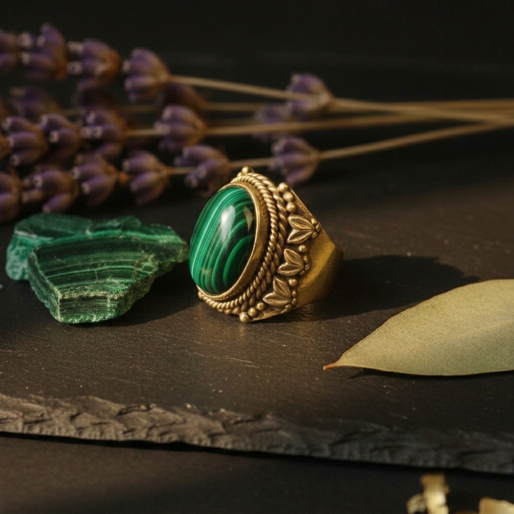 Throughout history, malachite has been admired for its rich color and presence, valued across cultures for its distinctive character.